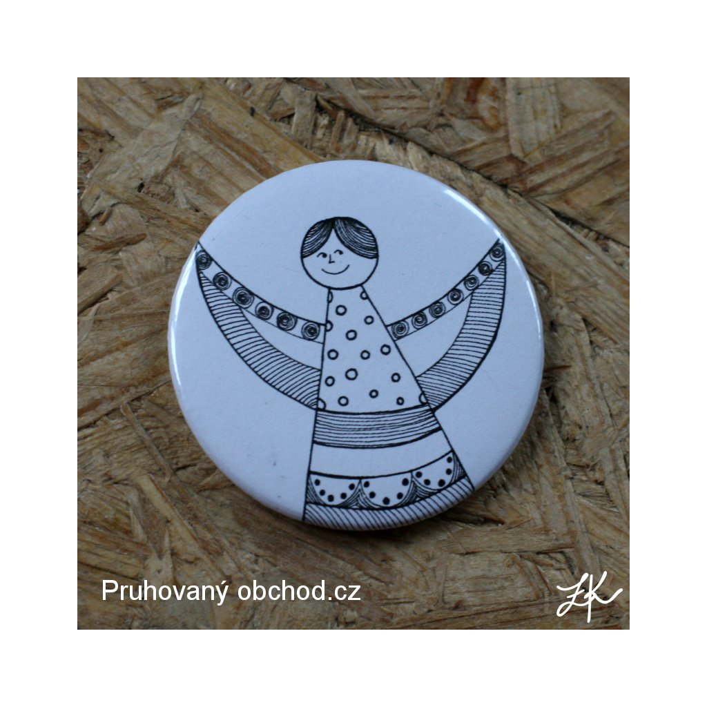 Placka neboli button, na tašku, batoh, na bundu nebo úplně jinam, třeba jako u nás doma, na kapsář v předsíni. Magnetka, milá drobnost , která potěší. Kdo by neměl celou sbírku magnetů na lednici, ne. Kapesní zrcátko jako dárek pro kamarádku nebo pro sebe do kabelky, pro radost a ještě taaak často se hodí. Hromada milých drobností. Vše s mými obrázky, linoryty na akvarelových podkladech, olejové obrázky, perokresby a časem možná přibydou i moje akvarely. Měla jsem velikou touhu svou tvorbu, můj koníček, ke kterému jsem se po mnoha letech vrátila a trávím večery s barvami, nějak nabídnout vám. Koupě stroje - plackovače to vyřešila. Upravuji, zmenšuji, tisknu a vyrábím magnetky, zrcátka, magnetky pro radost svou a snad i vaši.