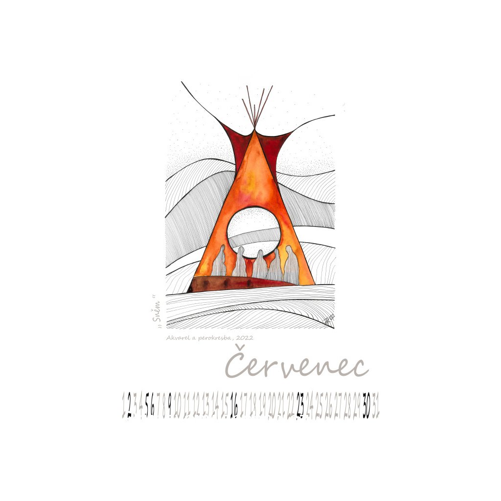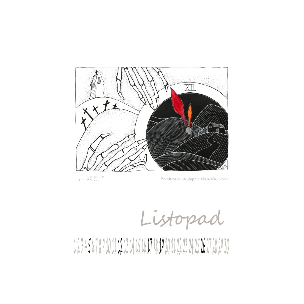 12 mých perokreseb s trochou akvarelu, všechny vznikly letos a ve všech je kus mé duše, tentokrát je totiž kalendář jen můj, bez fotografií někoho z rodiny, bez textů a citátů, prostě osobní výpověď ve své nahotě.