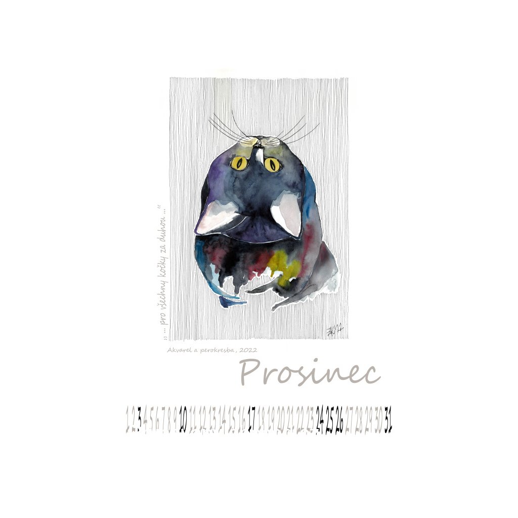 Moje dlouhé večery, často s sklenkou bílého vína a kočkou vedle pera. Setmělost mého atelieru. Nebo kachlové kamna, samojed u nohou a kouzlo chalupy v Pošumaví. Vzpomínky v mé hlavě. Fotky. Hudba. Audioknihy. Tak to je prostředí, kde vznikají mé kresby. Perokresby, někdy s trochou akvarelu. A z nich je sestaven kalendář na rok 2023.