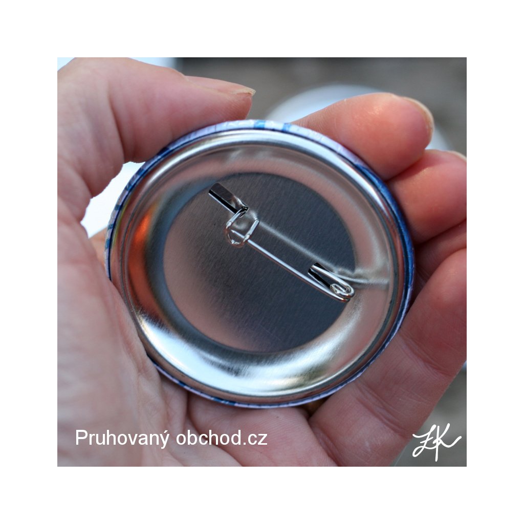 Button neboli placka o průměru 56 mm.