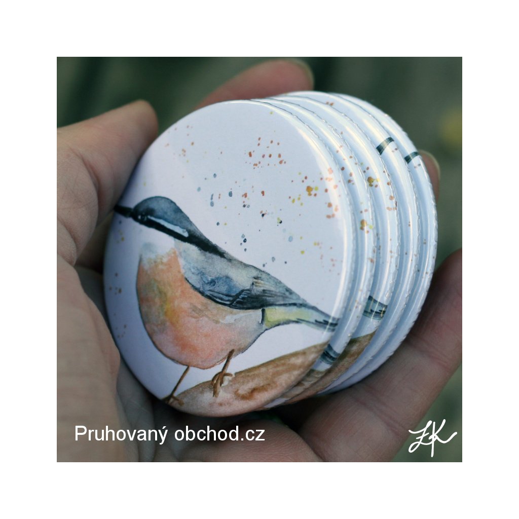 Placka neboli button, na tašku, batoh, na bundu nebo úplně jinam, třeba jako u nás doma, na kapsář v předsíni. Magnetka, milá drobnost , která potěší. Kdo by neměl celou sbírku magnetů na lednici, ne. Kapesní zrcátko jako dárek pro kamarádku nebo pro sebe do kabelky, pro radost a ještě taaak často se hodí. Hromada milých drobností. Vše s mými obrázky, linoryty na akvarelových podkladech, olejové obrázky, perokresby a časem možná přibydou i moje akvarely. Měla jsem velikou touhu svou tvorbu, můj koníček, ke kterému jsem se po mnoha letech vrátila a trávím večery s barvami, nějak nabídnout vám. Koupě stroje - plackovače to vyřešila. Upravuji, zmenšuji, tisknu a vyrábím magnetky, zrcátka, magnetky pro radost svou a snad i vaši.