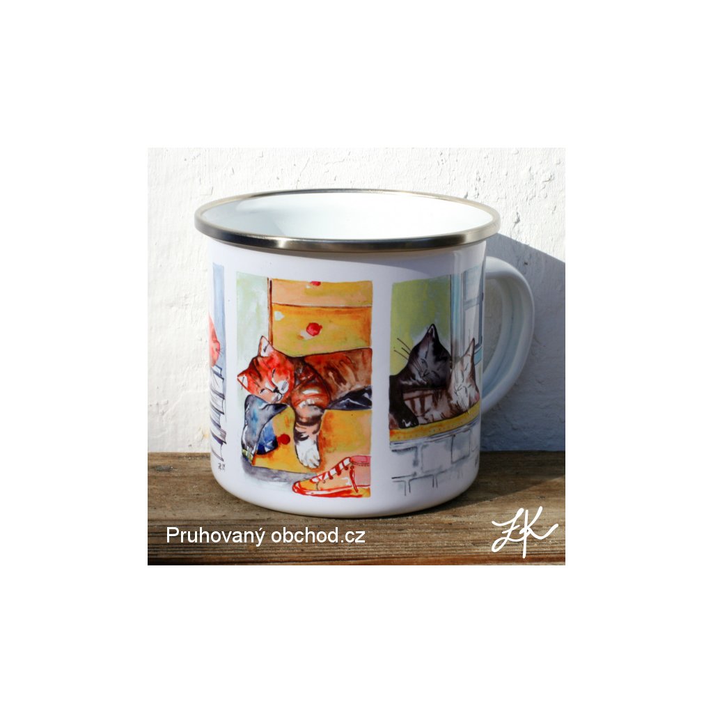 Pro tuláky a bylinkáře, ale i vodáky, táborníky, dobrodruhy, trampy, skauty, námořníky ....... pod stan, na vodu, na vandr, na loď nebo v zimě ke krbu s čajem pod deku, kde se pak vzpomíná na letní dobrodružství. Smaltovaný plechový hrnek "plecháček". Autorská kresba, vyroben sublimační technikou. Plecháčky vydrží mytí jak v ruce, tak v myčce, stejně tak ohřívání na sporáku. Funguje i na indukčním sporáku. Při potisku 2 cm pod okraj se hrneček bere oficiálně jako nádobí, při potisku až k hornímu kraji se jedná dle zákona pouze o reklamní předmět.