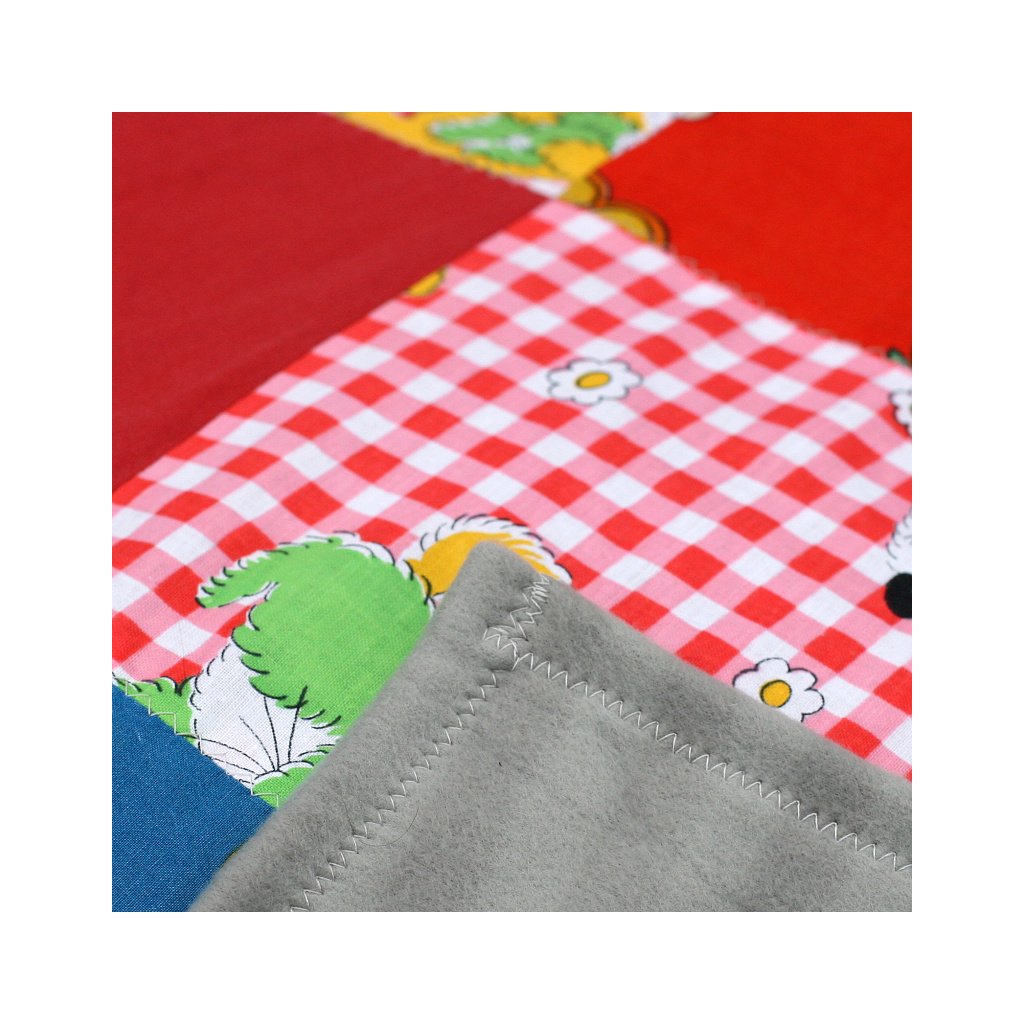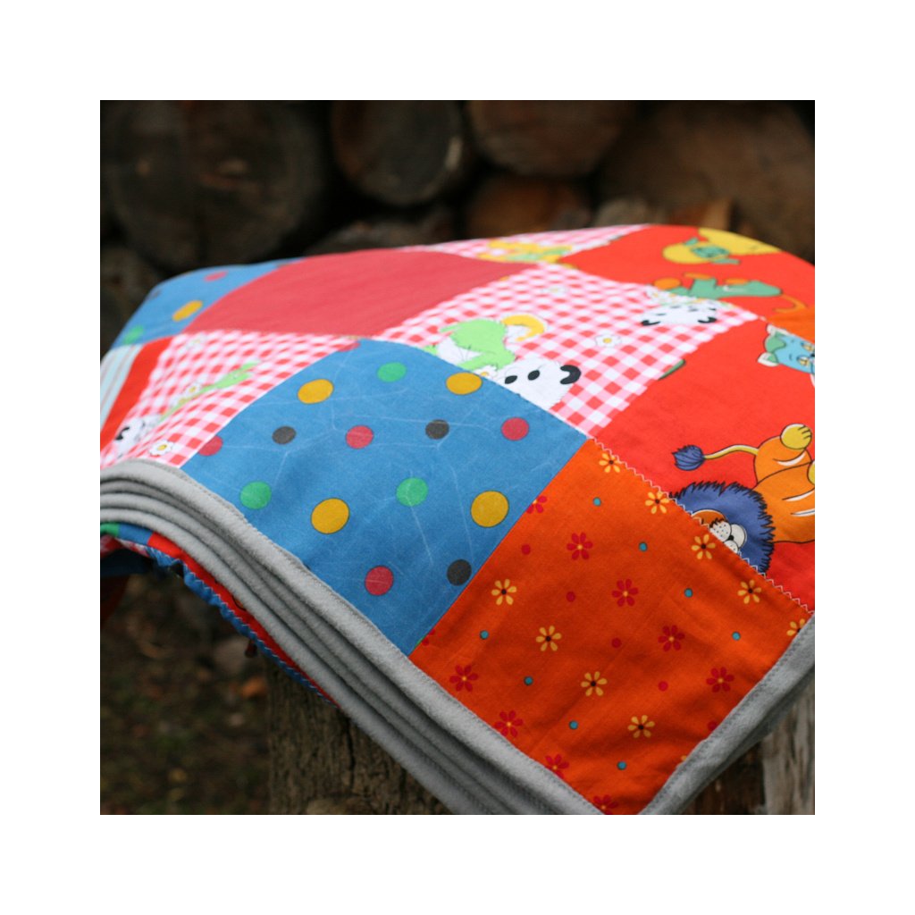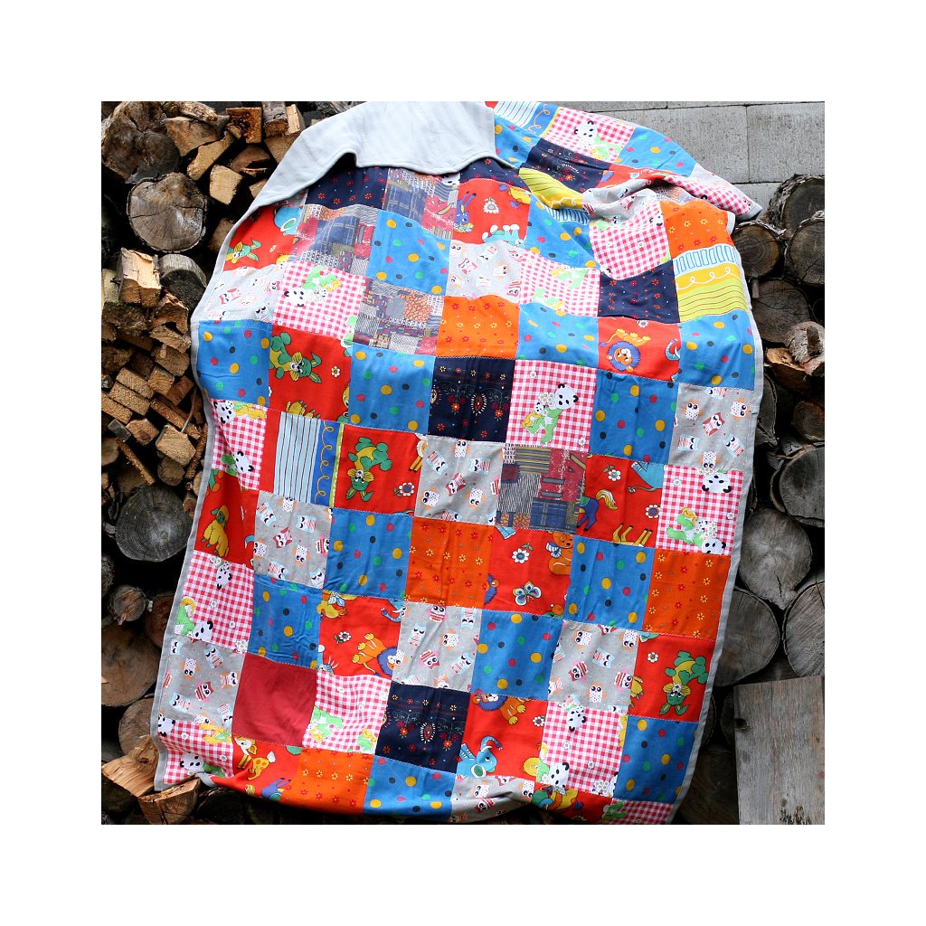 Kombinacbe mých zbytků, vzorků a pokladů starých skříní. Deky jsou podšité pouze fleecem. V kratším směru prošitá entlem, stejně tak entlem přišitý fleecový lem. Tato je podšita šedým fleecem.