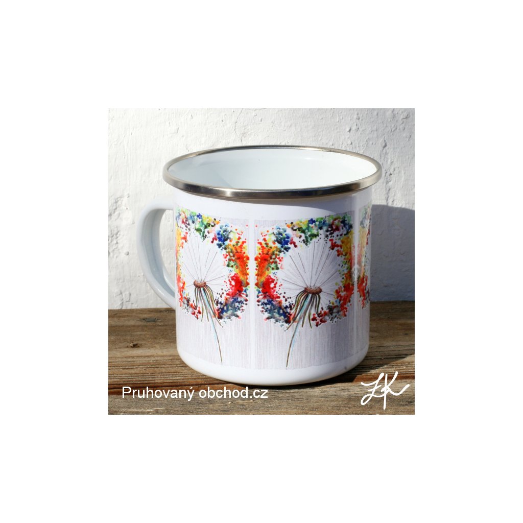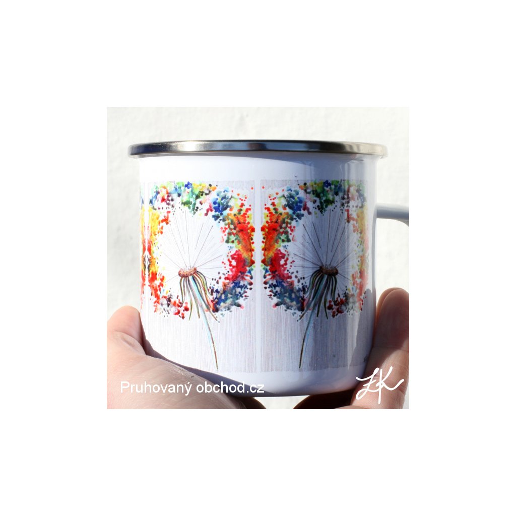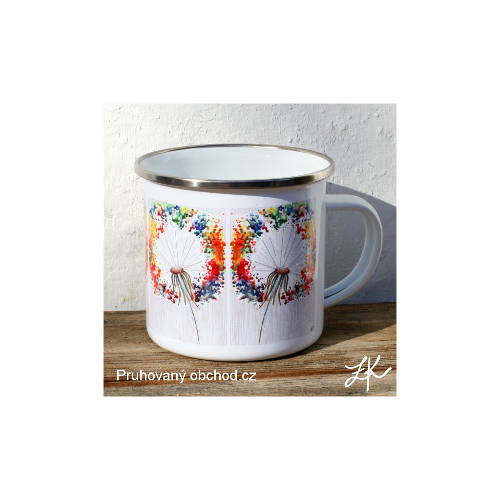 Pro tuláky a bylinkáře, ale i vodáky, táborníky, dobrodruhy, trampy, skauty, námořníky ....... pod stan, na vodu, na vandr, na loď nebo v zimě ke krbu s čajem pod deku, kde se pak vzpomíná na letní dobrodružství. Smaltovaný plechový hrnek "plecháček". Autorská kresba, vyroben sublimační technikou. Plecháčky vydrží mytí jak v ruce, tak v myčce, stejně tak ohřívání na sporáku. Funguje i na indukčním sporáku. Při potisku 2 cm pod okraj se hrneček bere oficiálně jako nádobí, při potisku až k hornímu kraji se jedná dle zákona pouze o reklamní předmět.