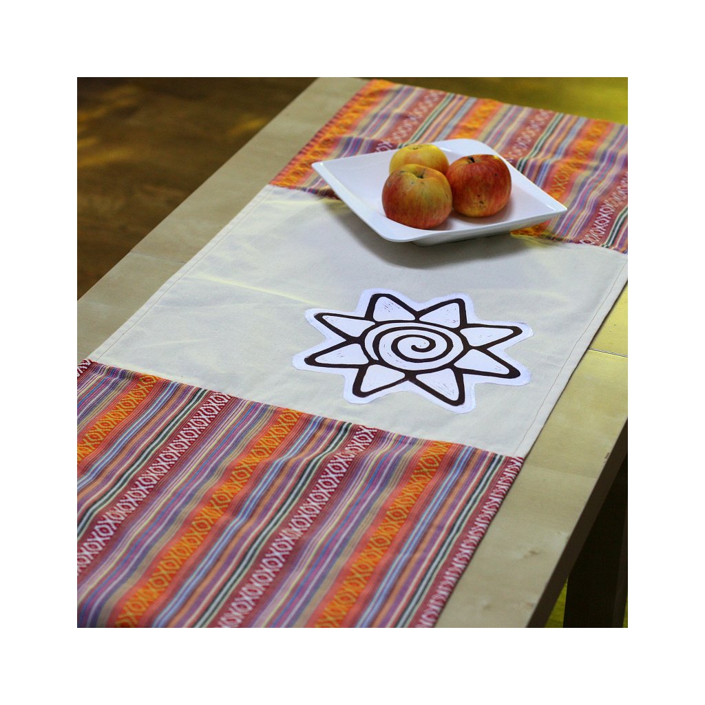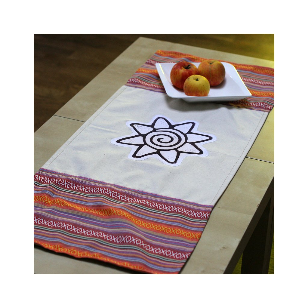 Indiánská barevnost, vzory indiánským podobné, barvy, barvy, barvy. A k tomu jednobarevné plátno a můj autorský linoryt. To jsou barvy na váš stůl.