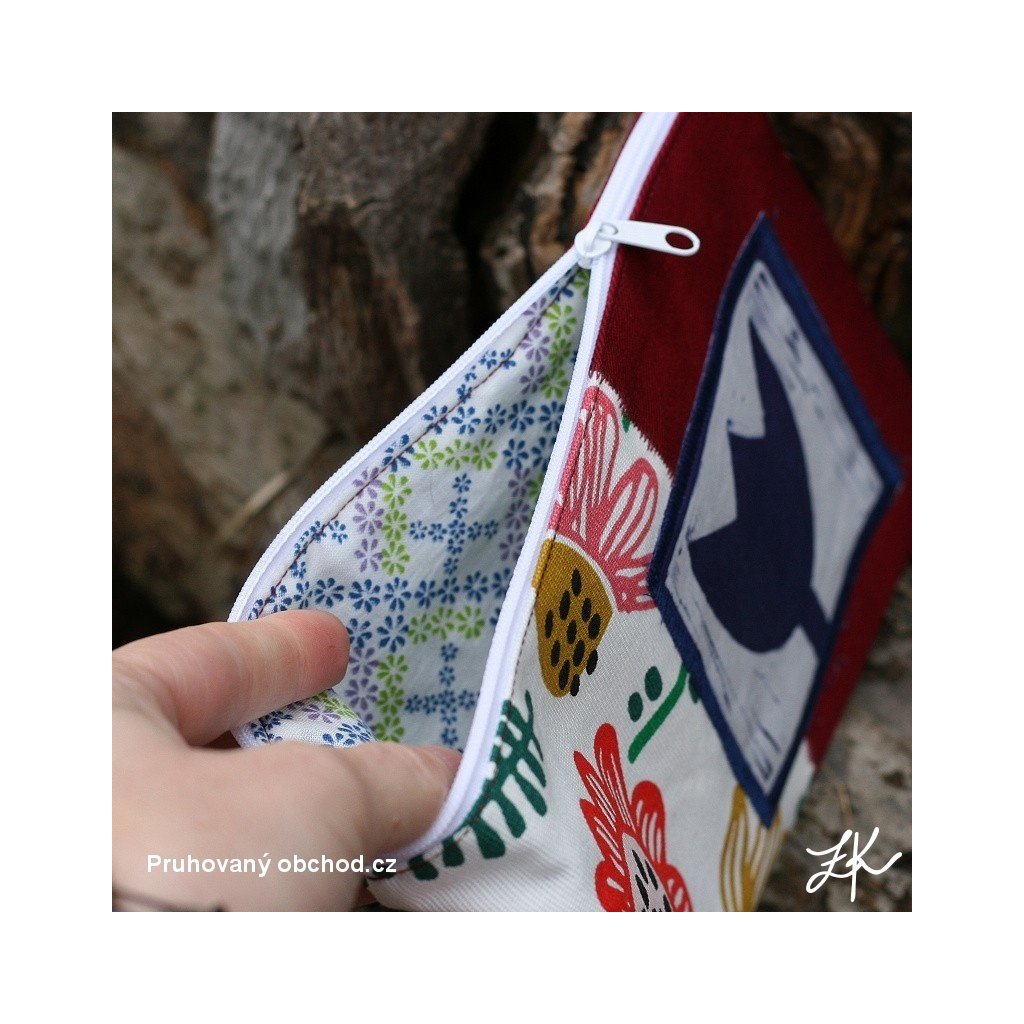 Každá je originál, no skoro každá, neboť jsou šity ze zbytků látek od tašek, běhounů apod. Rozměr u všech stejný cca 13 x 23cm. Vždy sešita alespoň ze dvou látek, sešití ozdobně prošito, s podšívkou, vrchní vrstva podžehlena vlizelínem pro pevnější tvar. Vrchní i spodní vrstva je 100% bavlna. Lze prát nejlépe v ruce do 40 stupňů nebo šetrně v pračce a žehlit teplotou na bavlnu. Barevnost se může mírně lišit vlivem fotografie a nastavení monitoru.