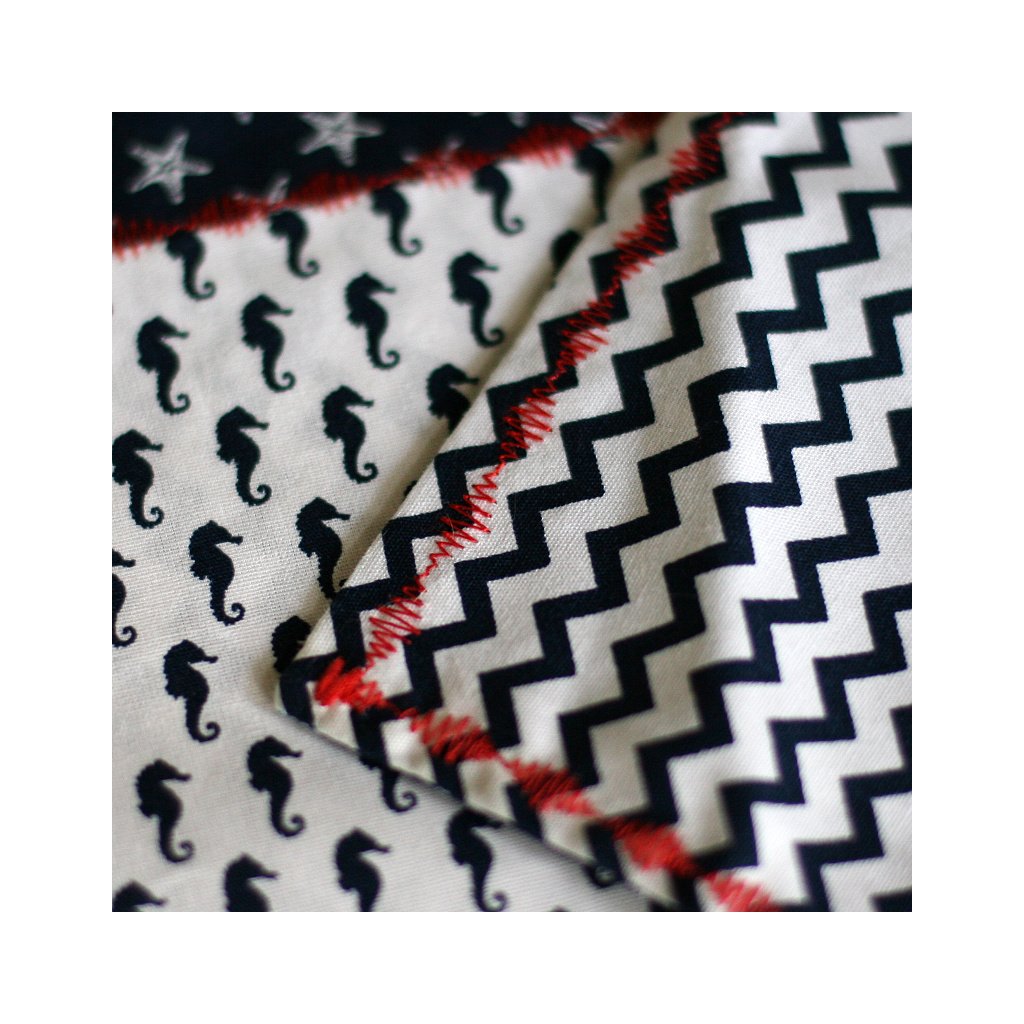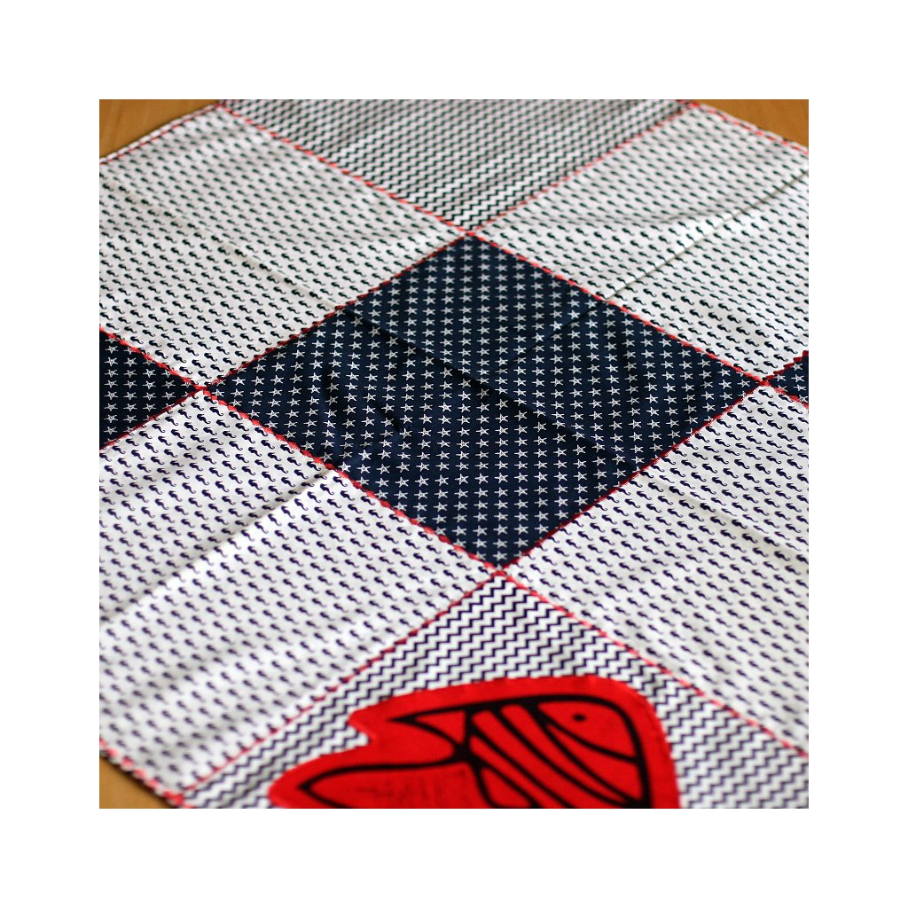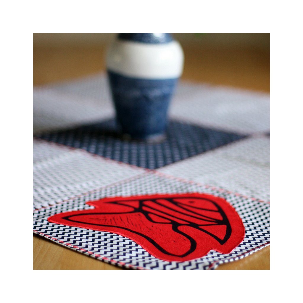 Ubrusy jsou sestaveny z 9 čtvreců, většinou v sestavě 4 čtverce jedné látky, 3 čtverce další látky a 2 čtverce z jiné látky, vybírám vždy látky a vzory k sobě ladící. Ubrus je podložen většinou jednobarevnou látkou, je tedy oboustraný, bez viditelných okrajů, švů apod.