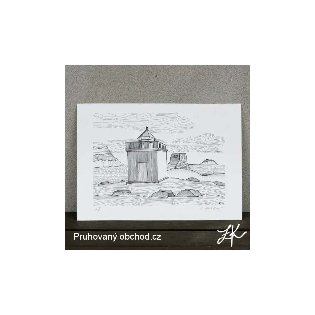 Tištěno digitální technologií v tiskárně, strukturovaný papír, gramáž papíru 300g/m2, barva papíru: světle béžová. Od každé perokresby je vytištěno jen 2 až 6 tisků (nikdy jich nebude víc), označeny jako A.T., tedy autorský tisk, bez grafického číslování. Signováno v pravém spodním rohu. Bez rámu. Vhodné k zarámování.