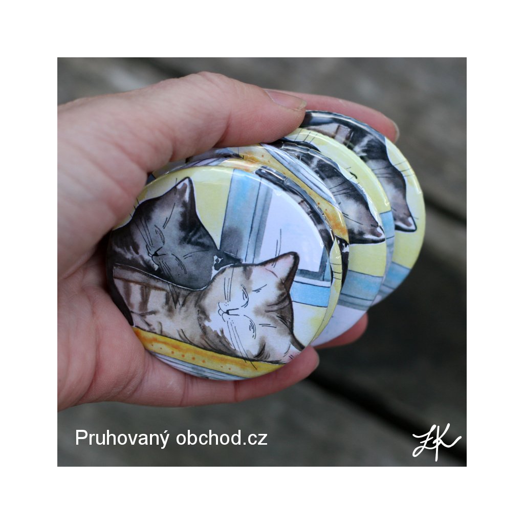 Placka neboli button, na tašku, batoh, na bundu nebo úplně jinam, třeba jako u nás doma, na kapsář v předsíni. Magnetka, milá drobnost , která potěší. Kdo by neměl celou sbírku magnetů na lednici, ne. Kapesní zrcátko jako dárek pro kamarádku nebo pro sebe do kabelky, pro radost a ještě taaak často se hodí. Hromada milých drobností. Vše s mými obrázky, linoryty na akvarelových podkladech, olejové obrázky, perokresby a akvarely. Měla jsem velikou touhu svou tvorbu, můj koníček, ke kterému jsem se po mnoha letech vrátila a trávím večery s barvami, nějak nabídnout vám. Koupě stroje - plackovače to vyřešila. Upravuji, zmenšuji, tisknu a vyrábím magnetky, zrcátka, magnetky pro radost svou a snad i vaši.
