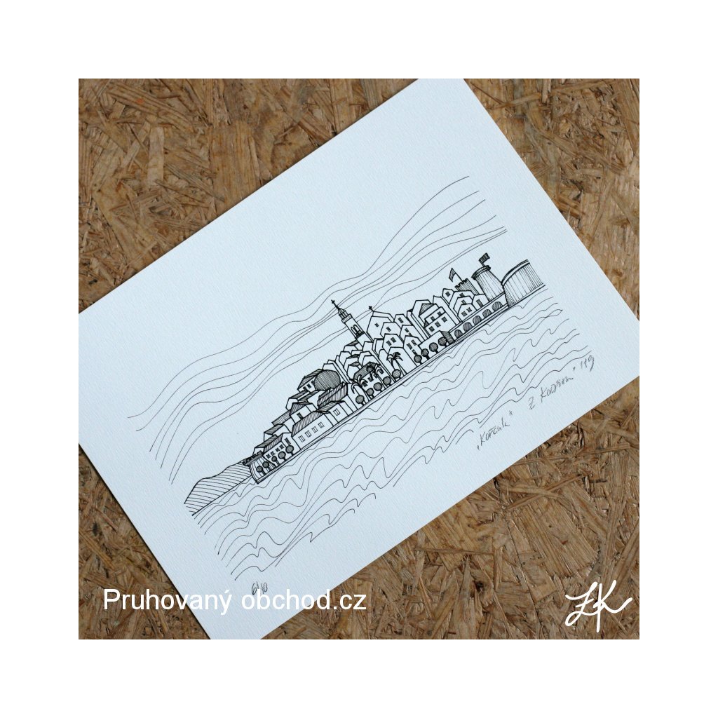 Tištěno digitální technologií v tiskárně, strukturovaný papír, gramáž papíru 300g/m2, barva papíru: světle béžová. Od každé perokresby pouze 10 tisků, číslováno jako grafické listy. Signováno v pravém spodním rohu. V levém spodním rohu grafické číslování. Bez rámu. Vhodné k zarámování.