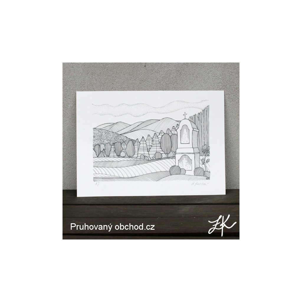 Tištěno digitální technologií v tiskárně, strukturovaný papír, gramáž papíru 300g/m2, barva papíru: světle béžová. Od každé perokresby je vytištěno jen 2 až 6 tisků (nikdy jich nebude víc), označeny jako A.T., tedy autorský tisk, bez grafického číslování. Signováno v pravém spodním rohu. Bez rámu. Vhodné k zarámování.
