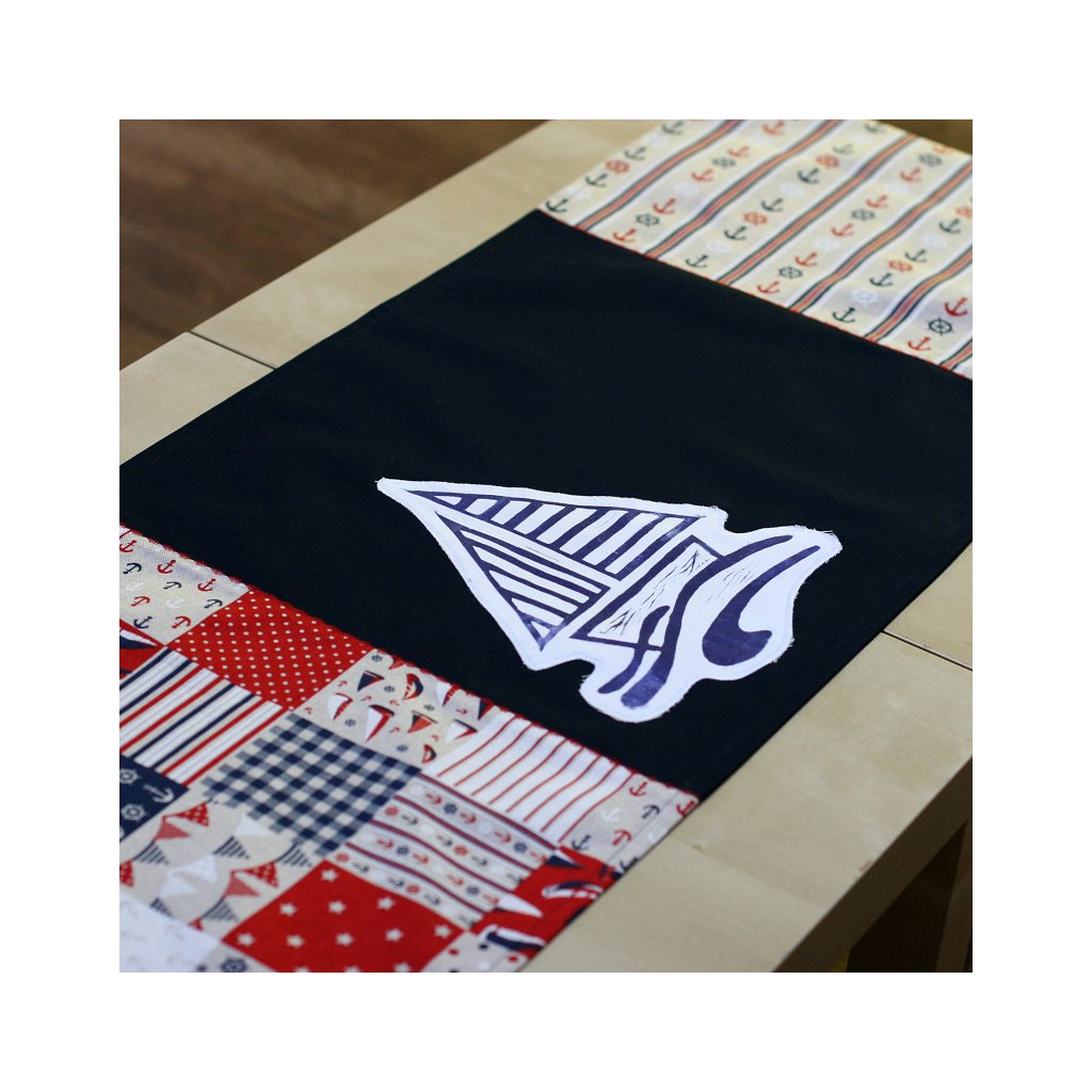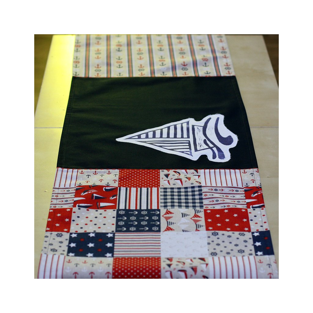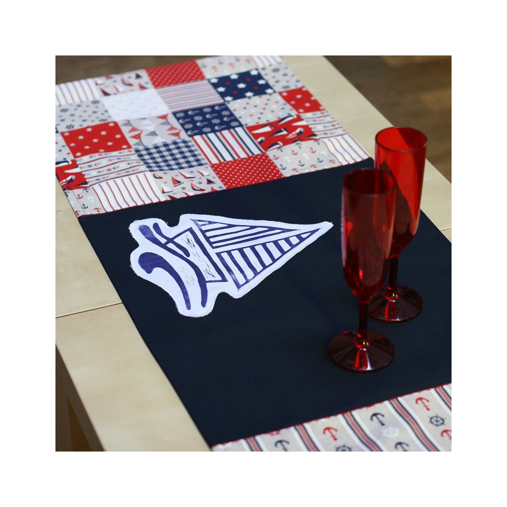 Běhouny jsou sestaveny ze dvou látek, výjimečně ze tří látek, z jednobarevného přírodního či barevného plátna a z plátna v námořnickém stylu. Doplněno vždy autorským linorytem či aplikací. Šíře 40cm, délka je různá, uvedena u jednotlivých kusů. Šito v malých sériích po nekolika kusech, od 1 po max. 6ks.