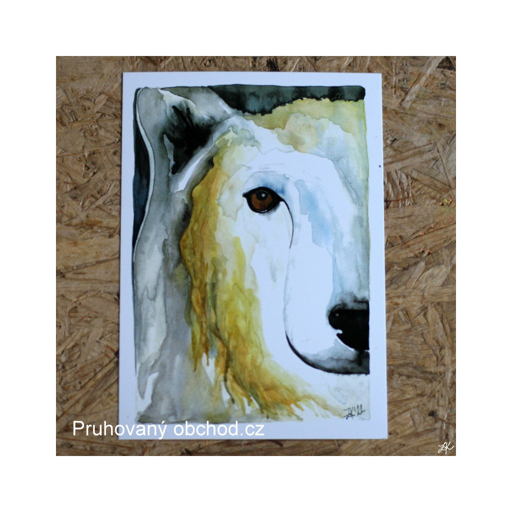 Medvěd lední. Jedna. Z trojice půlšelem. Akvarel.