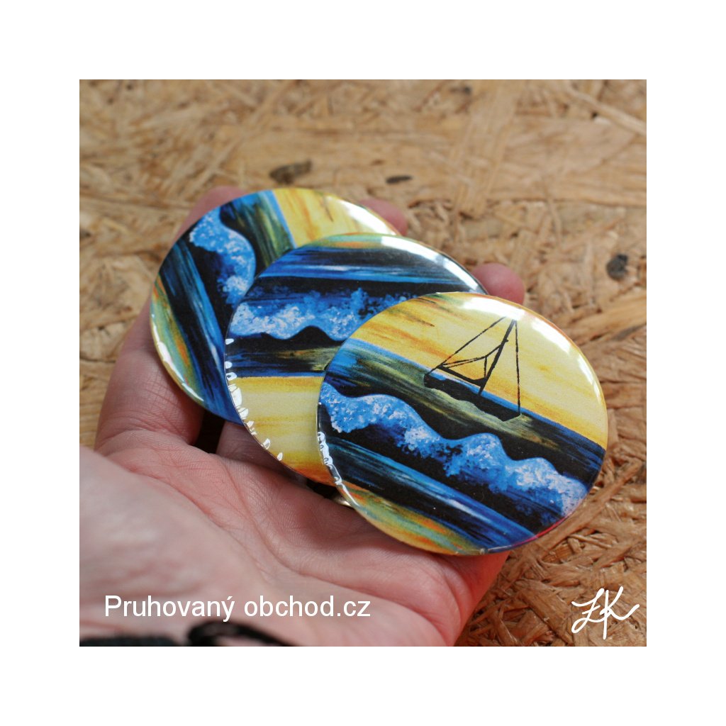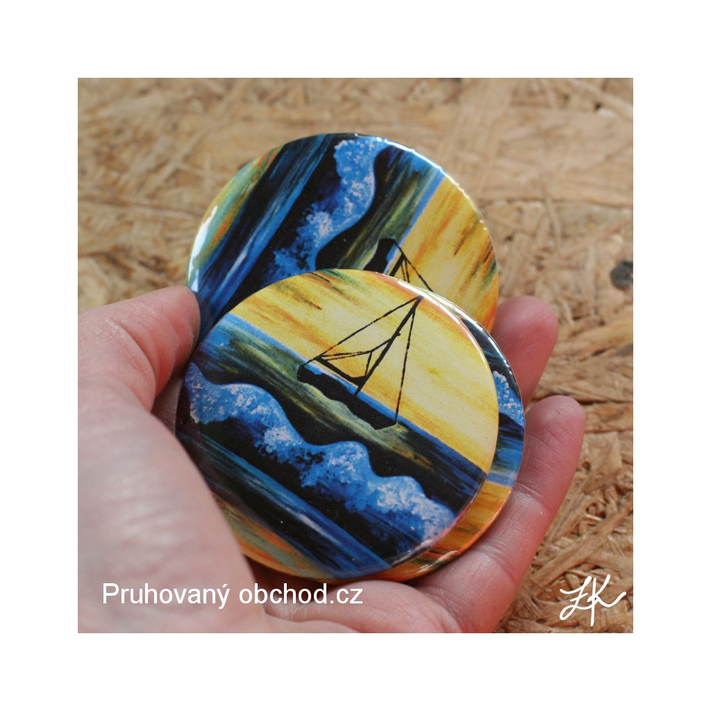 Placka neboli button, na tašku, batoh, na bundu nebo úplně jinam, třeba jako u nás doma, na kapsář v předsíni. Magnetka, milá drobnost , která potěší. Kdo by neměl celou sbírku magnetů na lednici, ne. Kapesní zrcátko jako dárek pro kamarádku nebo pro sebe do kabelky, pro radost a ještě taaak často se hodí. Hromada milých drobností. Vše s mými obrázky, linoryty na akvarelových podkladech, olejové obrázky, perokresby a časem možná přibydou i moje akvarely. Měla jsem velikou touhu svou tvorbu, můj koníček, ke kterému jsem se po mnoha letech vrátila a trávím večery s barvami, nějak nabídnout vám. Koupě stroje - plackovače to vyřešila. Upravuji, zmenšuji, tisknu a vyrábím magnetky, zrcátka, magnetky pro radost svou a snad i vaši.