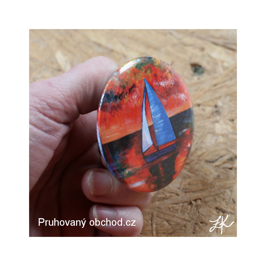 Plachetnice na večerním a ohnivém moři. Obrázek, no rozměry spíše již obraz, vznikl jen tak, z touhy po moři a dálkách, pro mne v době, kdy jsem netušila, že se moje oleje budou libit i někomu jinému než mně. A našel si místo u jedné známé taky hned po dokončení. Prý plachetnice nosí štestí. Snad tedy přinese štestí i vám.