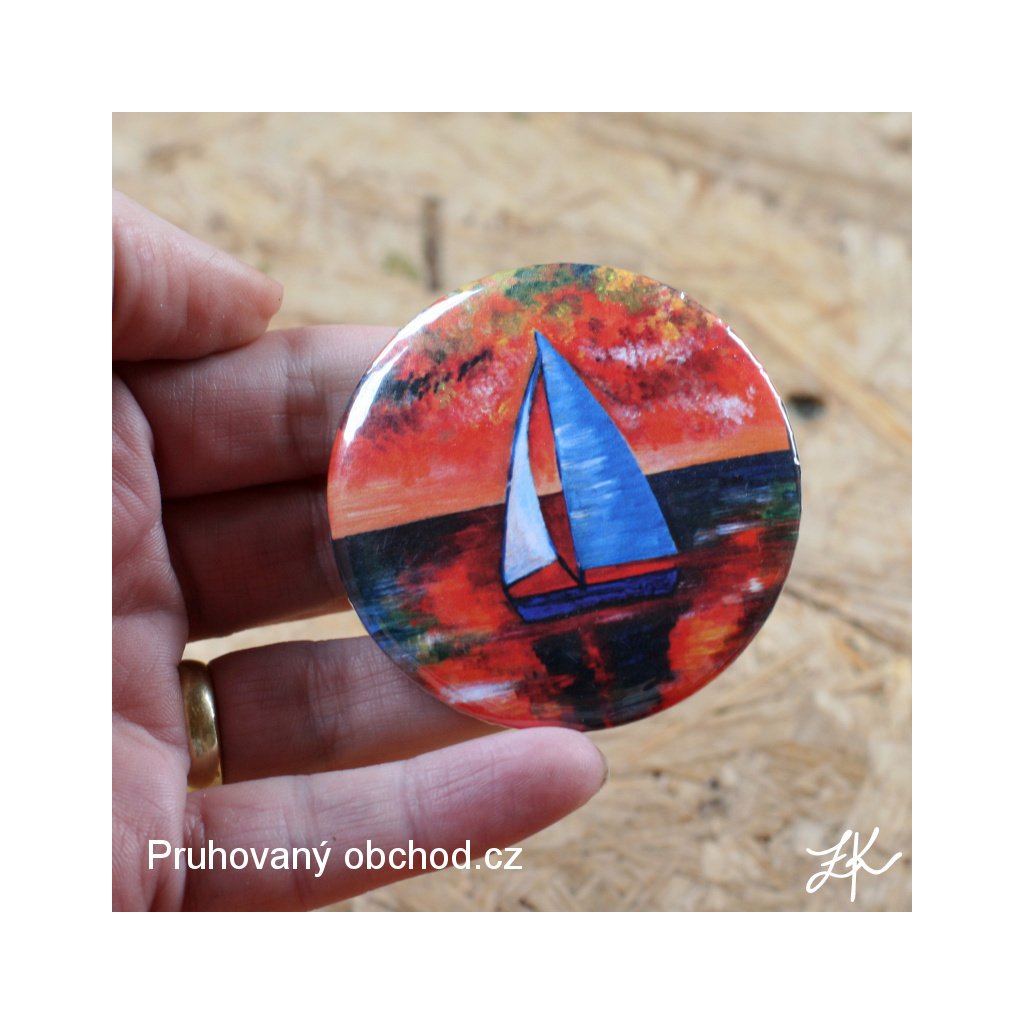 Placka neboli button, na tašku, batoh, na bundu nebo úplně jinam, třeba jako u nás doma, na kapsář v předsíni. Magnetka, milá drobnost , která potěší. Kdo by neměl celou sbírku magnetů na lednici, ne. Kapesní zrcátko jako dárek pro kamarádku nebo pro sebe do kabelky, pro radost a ještě taaak často se hodí. Hromada milých drobností. Vše s mými obrázky, linoryty na akvarelových podkladech, olejové obrázky, perokresby a časem možná přibydou i moje akvarely. Měla jsem velikou touhu svou tvorbu, můj koníček, ke kterému jsem se po mnoha letech vrátila a trávím večery s barvami, nějak nabídnout vám. Koupě stroje - plackovače to vyřešila. Upravuji, zmenšuji, tisknu a vyrábím magnetky, zrcátka, magnetky pro radost svou a snad i vaši.