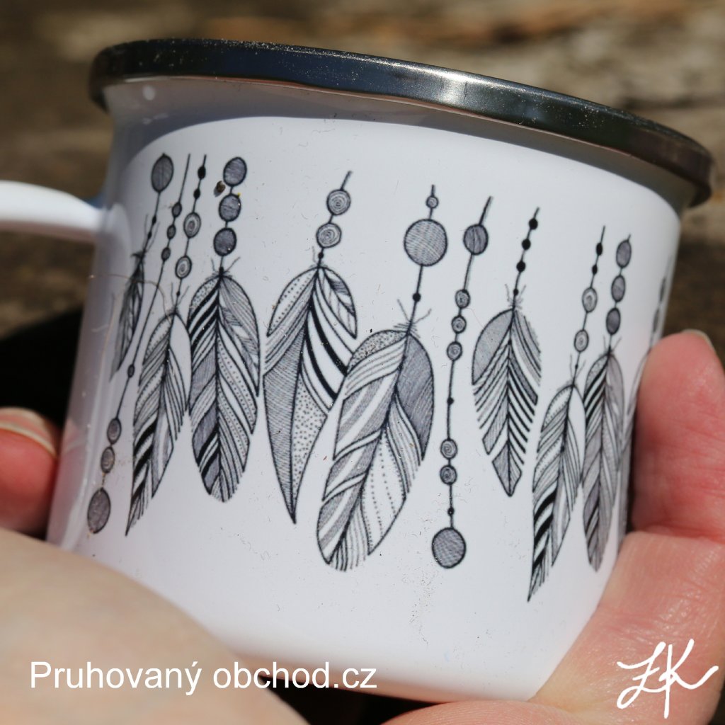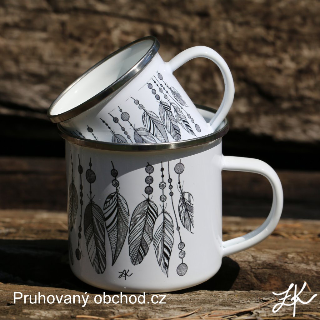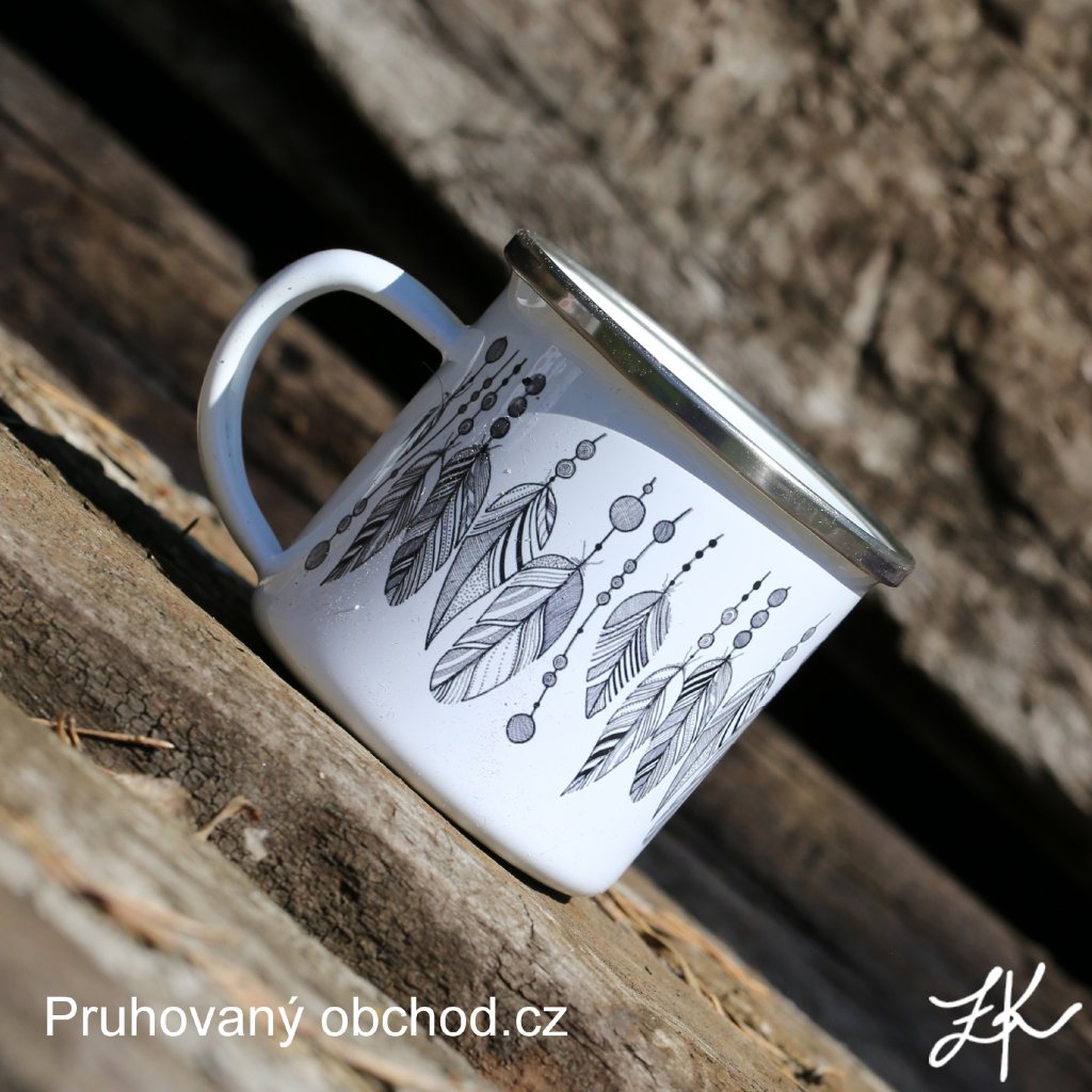 Pro tuláky a bylinkáře, ale i vodáky, táborníky, dobrodruhy, trampy, skauty, námořníky ....... pod stan, na vodu, na vandr, na loď nebo v zimě ke krbu s čajem pod deku, kde se pak vzpomíná na letní dobrodružství. Smaltovaný plechový hrnek "plecháček". Autorská kresba, vyroben sublimační technikou. Plecháčky vydrží mytí jak v ruce, tak v myčce, stejně tak ohřívání na sporáku. Funguje i na indukčním sporáku. Při potisku 2 cm pod okraj se hrneček bere oficiálně jako nádobí, při potisku až k hornímu kraji se jedná dle zákona pouze o reklamní předmět. Všechny plecháčky mají certifikát SGS (zdravotní nezávadnost).