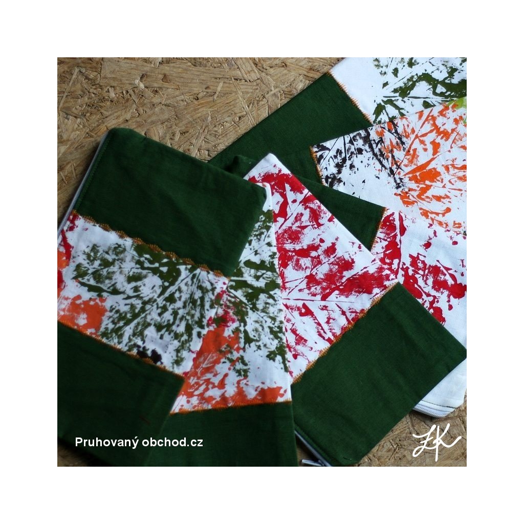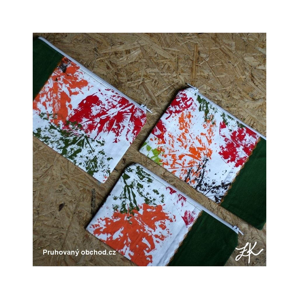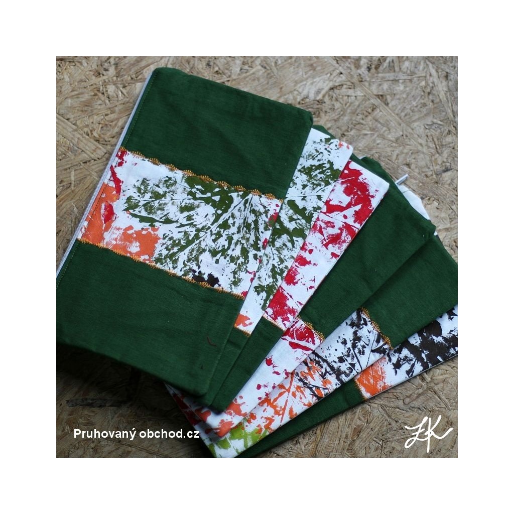 Specielní kolekce, když byly moji puberťáci menší potiskly bílé plátno textilními barvami podzimními listy, z části chtěly něco pro sebe a zbytek mi věnovali. A vznikla tato kolekce penálků.