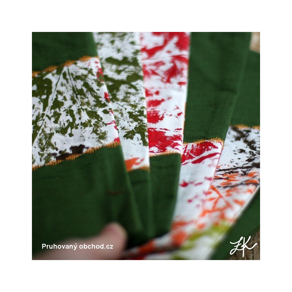 Každá je originál, neboť jsou šity ze zbytků látek od tašek, běhounů apod. Rozměr u všech stejný cca 13 x 23cm. Vždy sešita alespoň ze dvou látek, sešití ozdobně prošito, s podšívkou, vrchní vrstva podžehlena vlizelínem pro pevnější tvar. Vrchní i spodní vrstva je 100% bavlna. Lze prát nejlépe v ruce do 40 stupňů nebo šetrně v pračce a žehlit teplotou na bavlnu. Barevnost se může mírně lišit vlivem fotografie a nastavení monitoru.