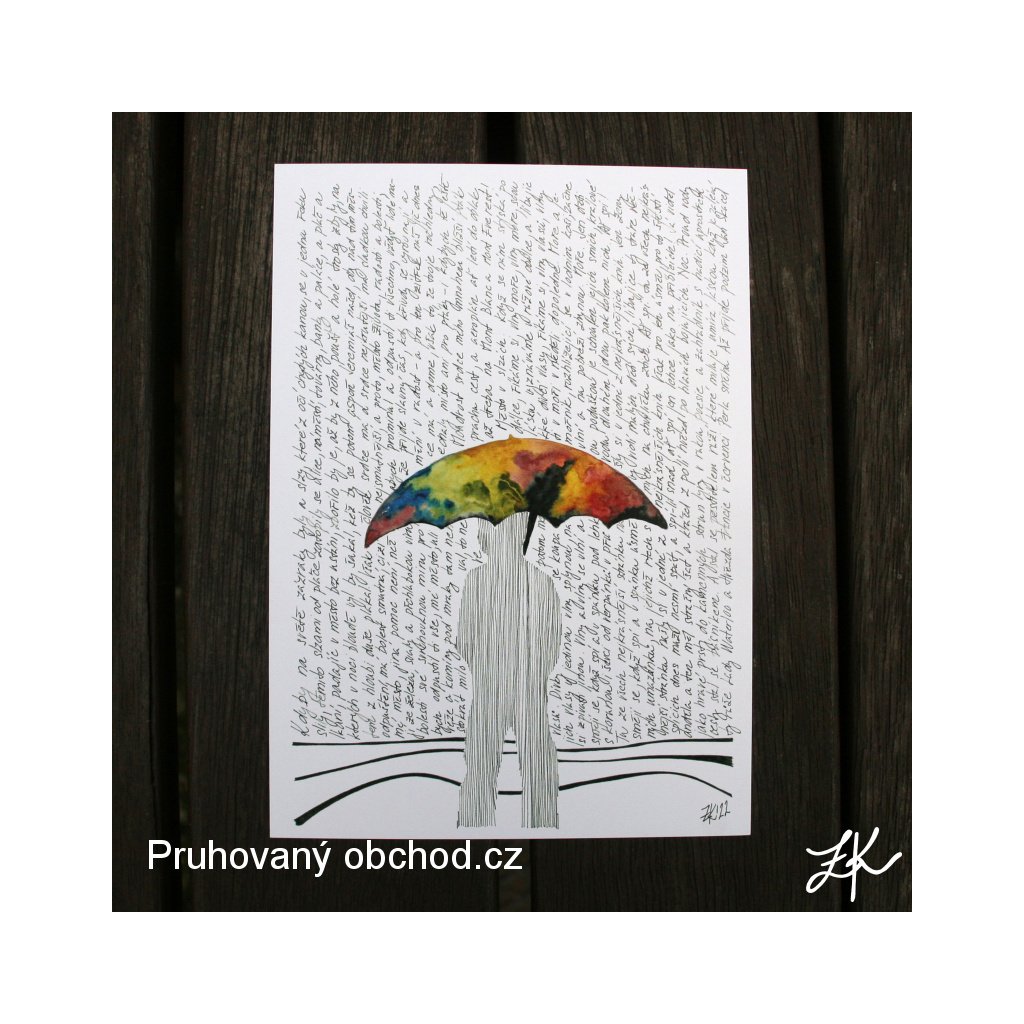 Proti dešti slov. Akvarel a perokresba.