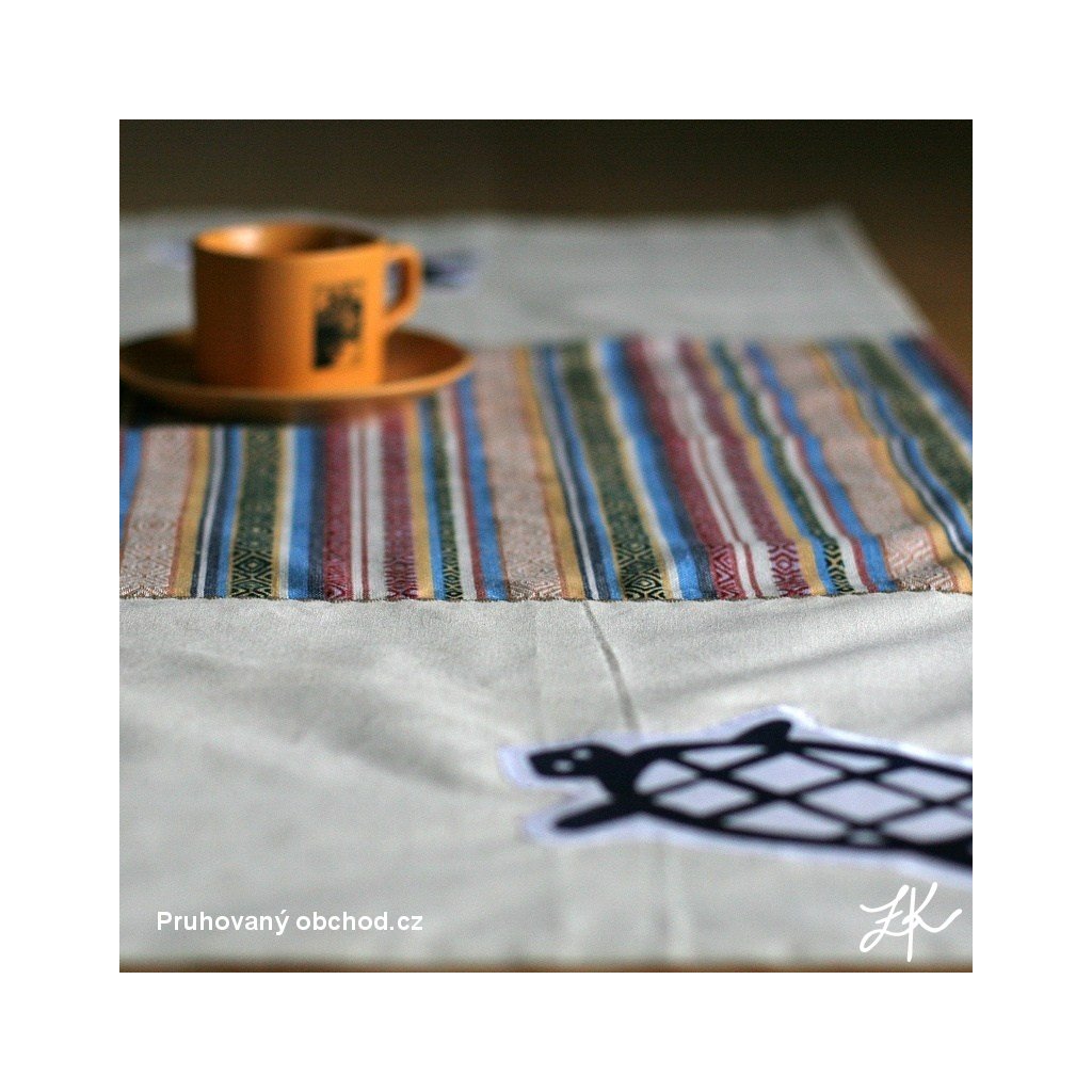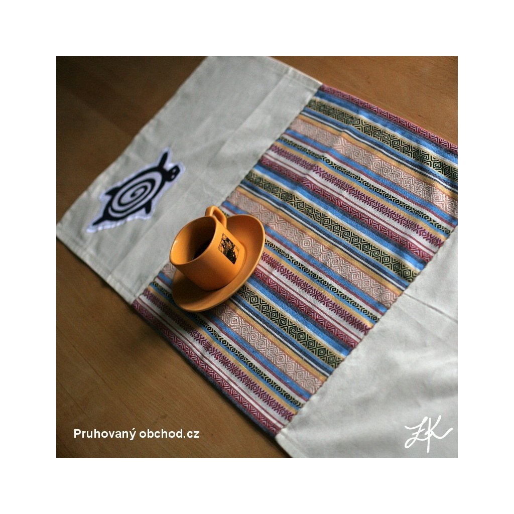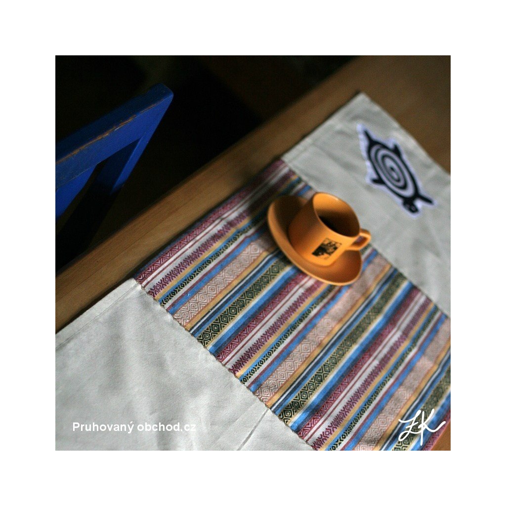 Indiánská barevnost, vzory indiánským podobné, barvy, barvy, barvy. A k tomu jednobarevné plátno a můj autorský linoryt. To jsou barvy na váš stůl.