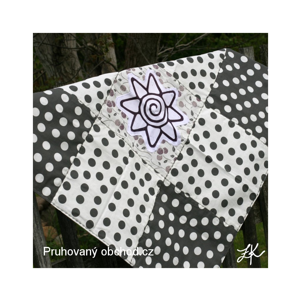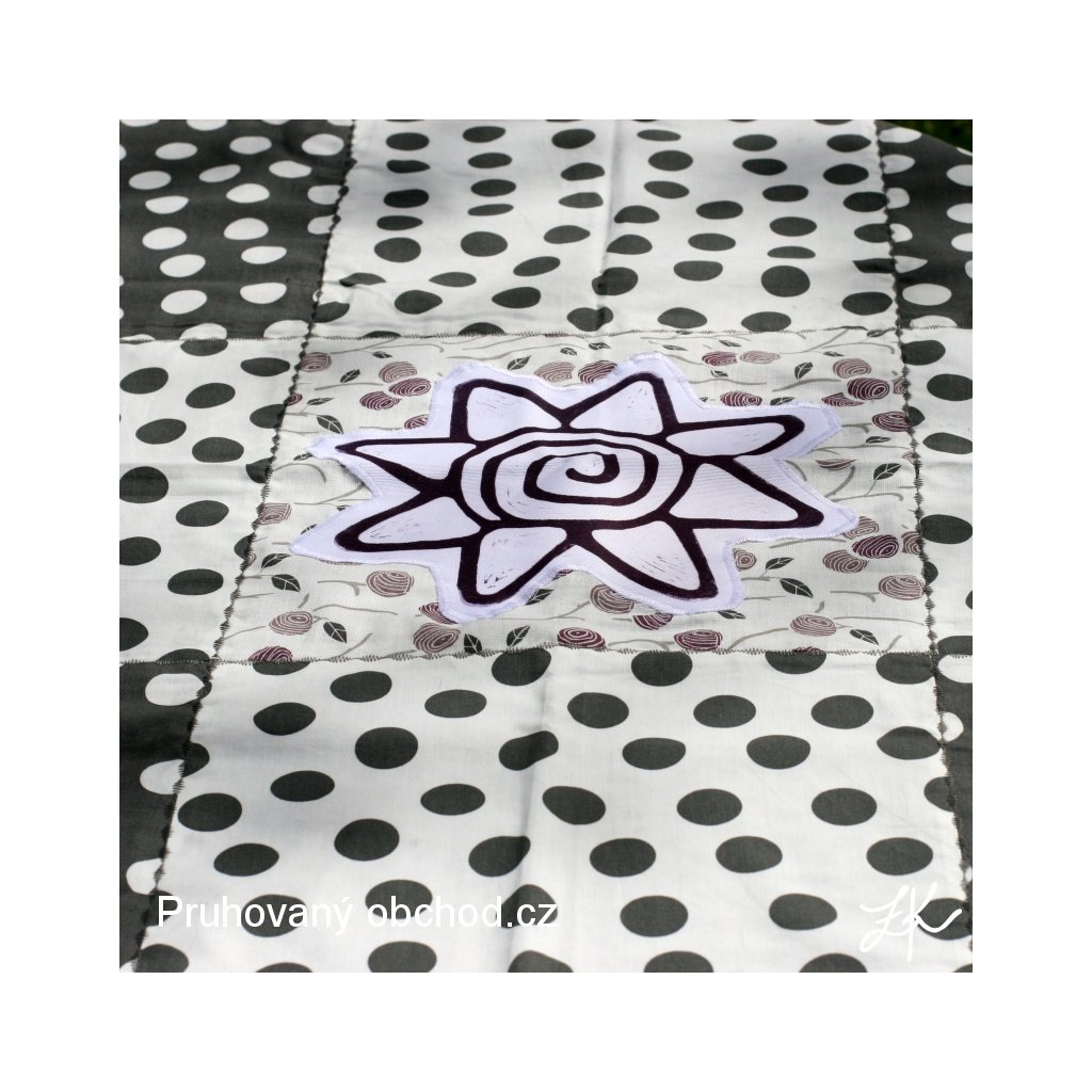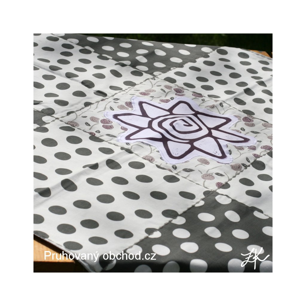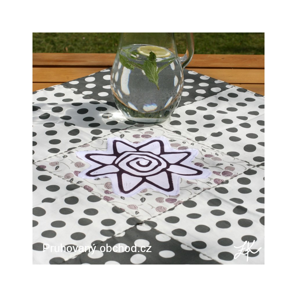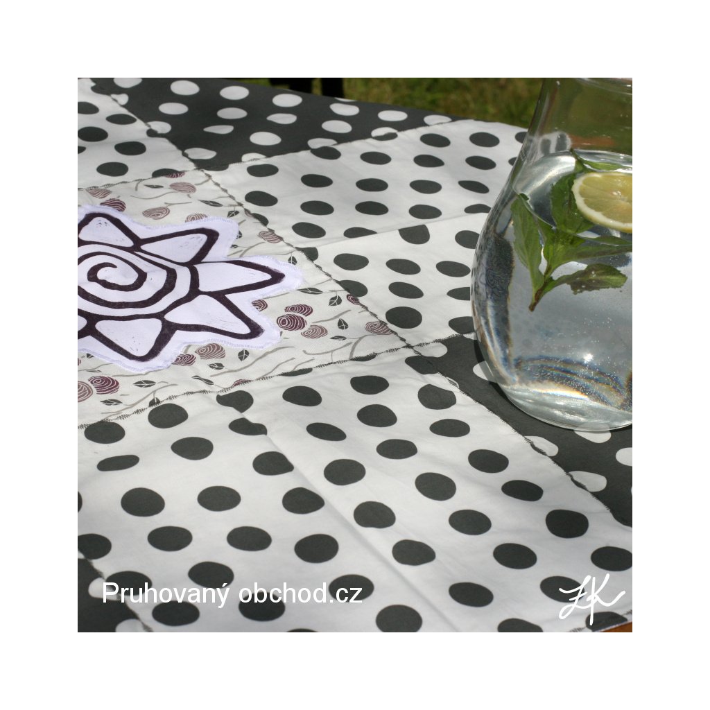 Ubrusy jsou sestaveny z 9 čtvreců, většinou v sestavě 4 čtverce jedné látky, 3 čtverce další látky a 2 čtverce z jiné látky, vybírám vždy látky a vzory k sobě ladící. Ubrus je podložen většinou jednobarevnou látkou, je tedy oboustraný, bez viditelných okrajů, švů apod.