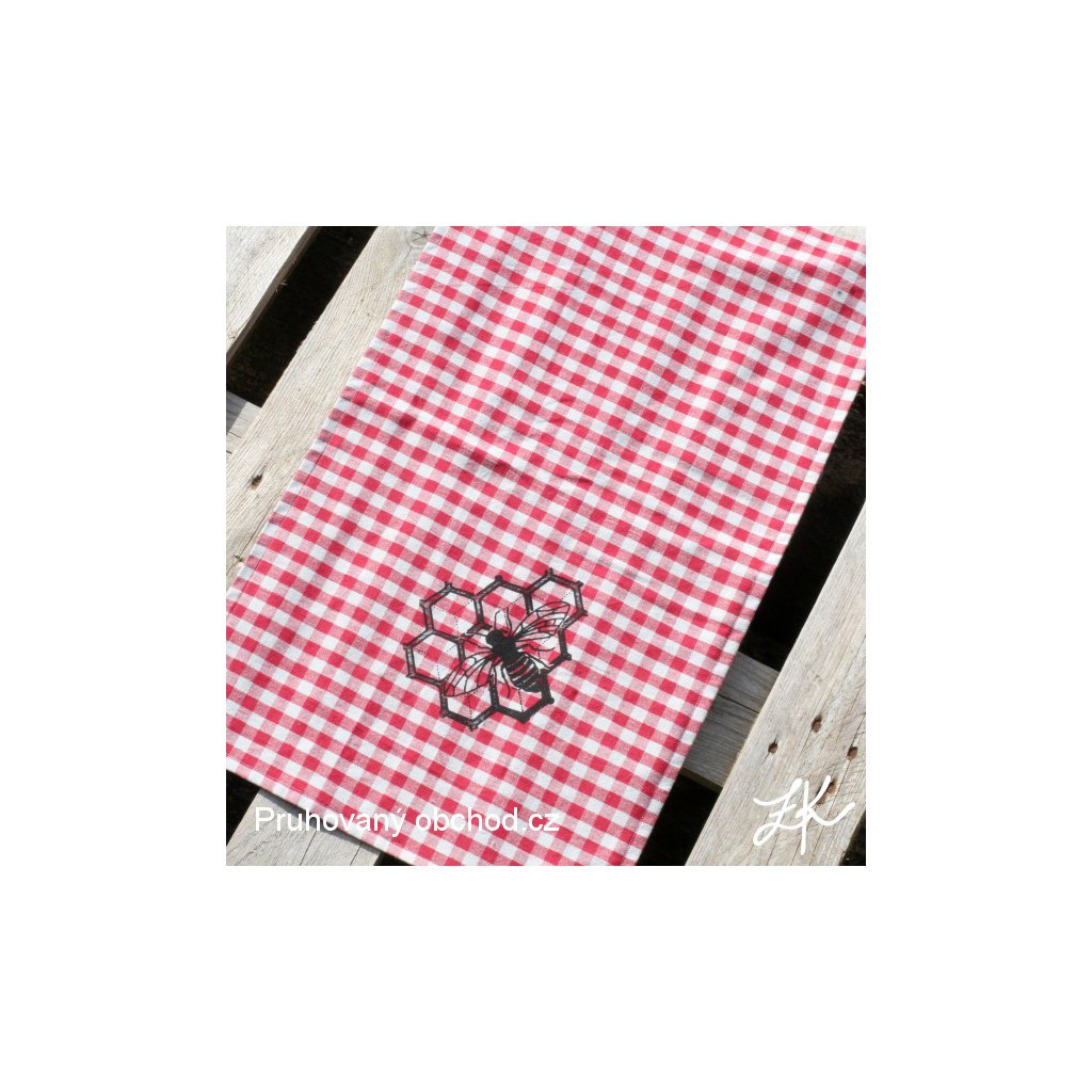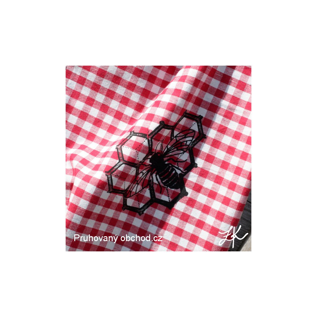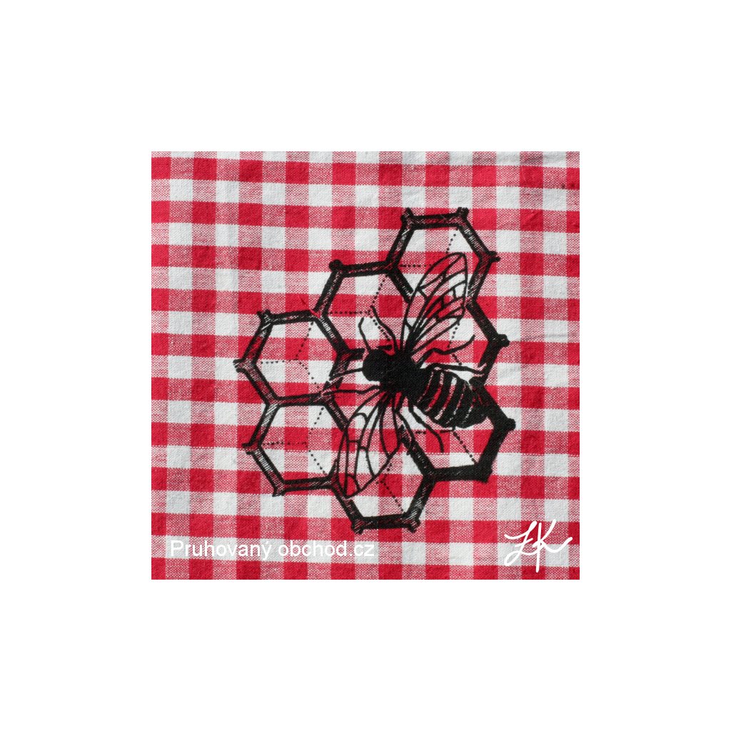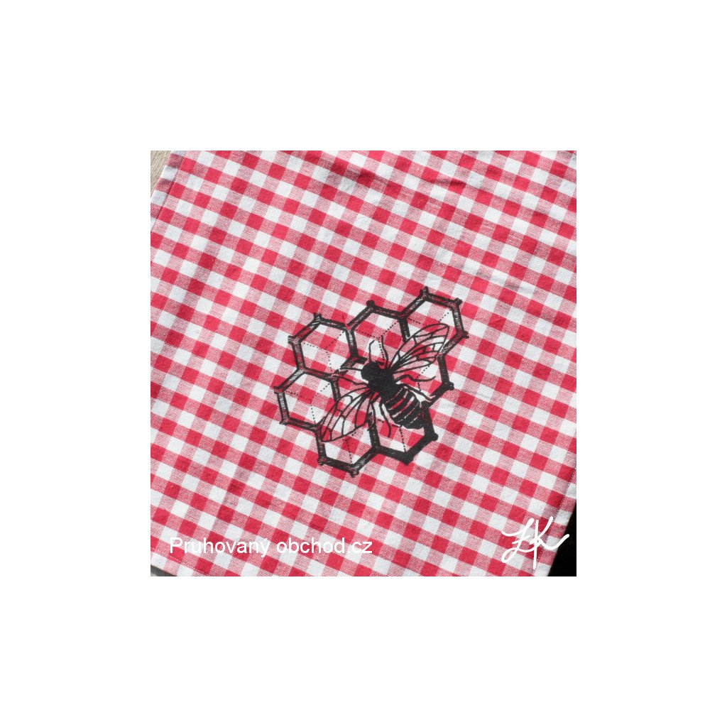 Mátě doma nadšeného včelaře? Tak to je prostě přesně pro něho. Krásná kanafasová utěrka červenobéžovýmy kostičkami s potiskem včelky na plástvi.