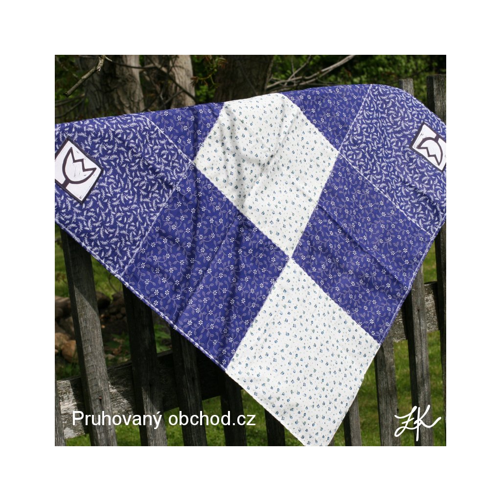 Imitace modrotisku. S tulipány, z druhéstrany opět imitace modrotisku plátno.