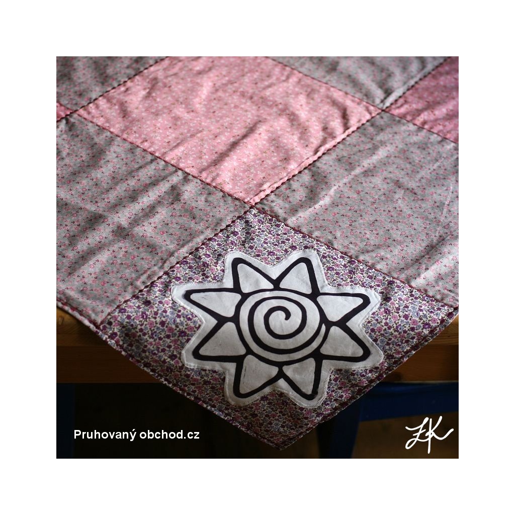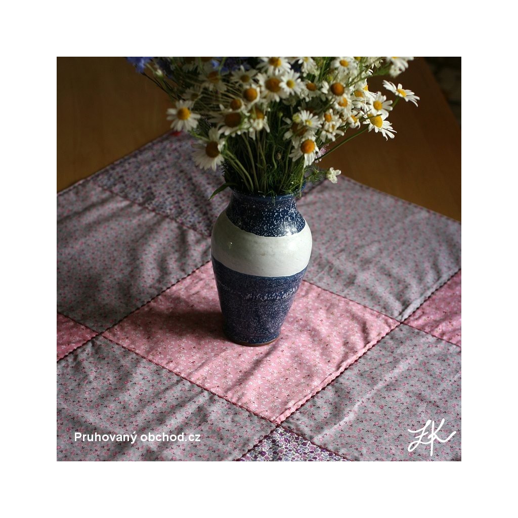 Ubrusy jsou sestaveny z 9 čtvreců, většinou v sestavě 4 čtverce jedné látky, 3 čtverce další látky a 2 čtverce z jiné látky, vybírám vždy látky a vzory k sobě ladící. Ubrus je podložen většinou jednobarevnou látkou, je tedy oboustraný, bez viditelných okrajů, švů apod.