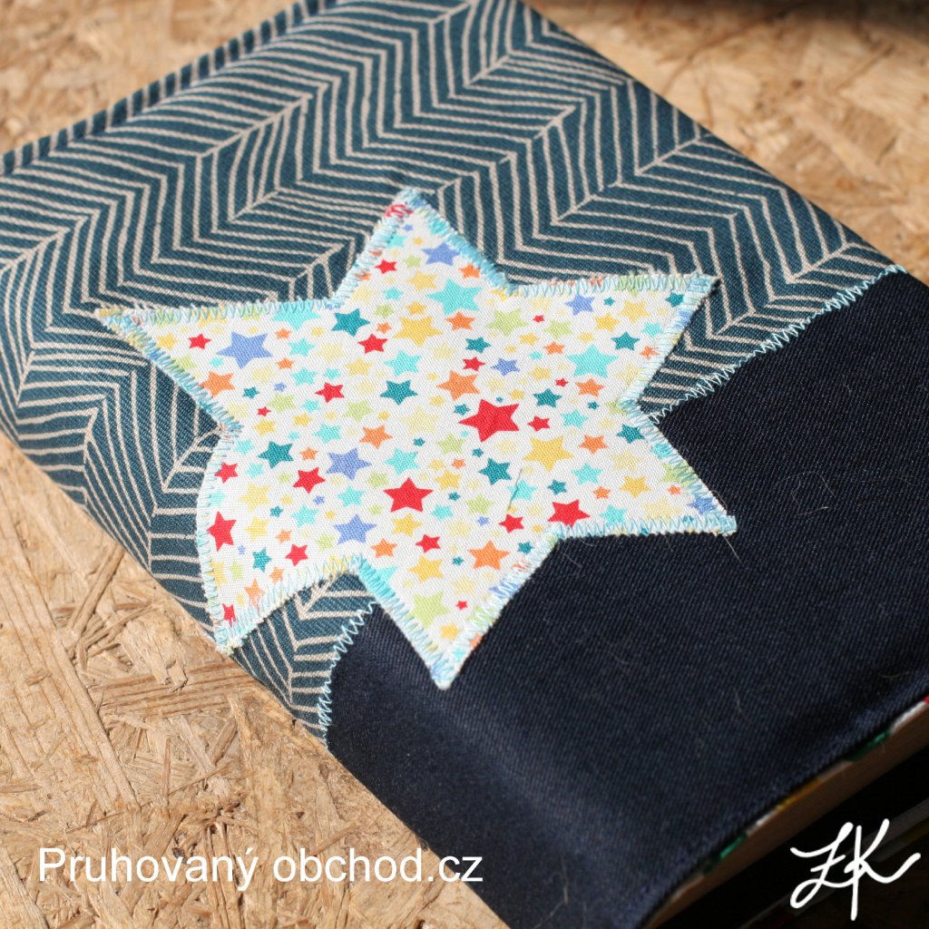 Obaly na knihy mají jednu záložku pevně ušitou, druhá se tvoří pomocí všité gumy, je tedy možné ho upravit na různě silnou knihu. Je všita textilní záložka. Výška obalu cca 23 až 24,5cm. Tloušťka hřbetu až 6cm.