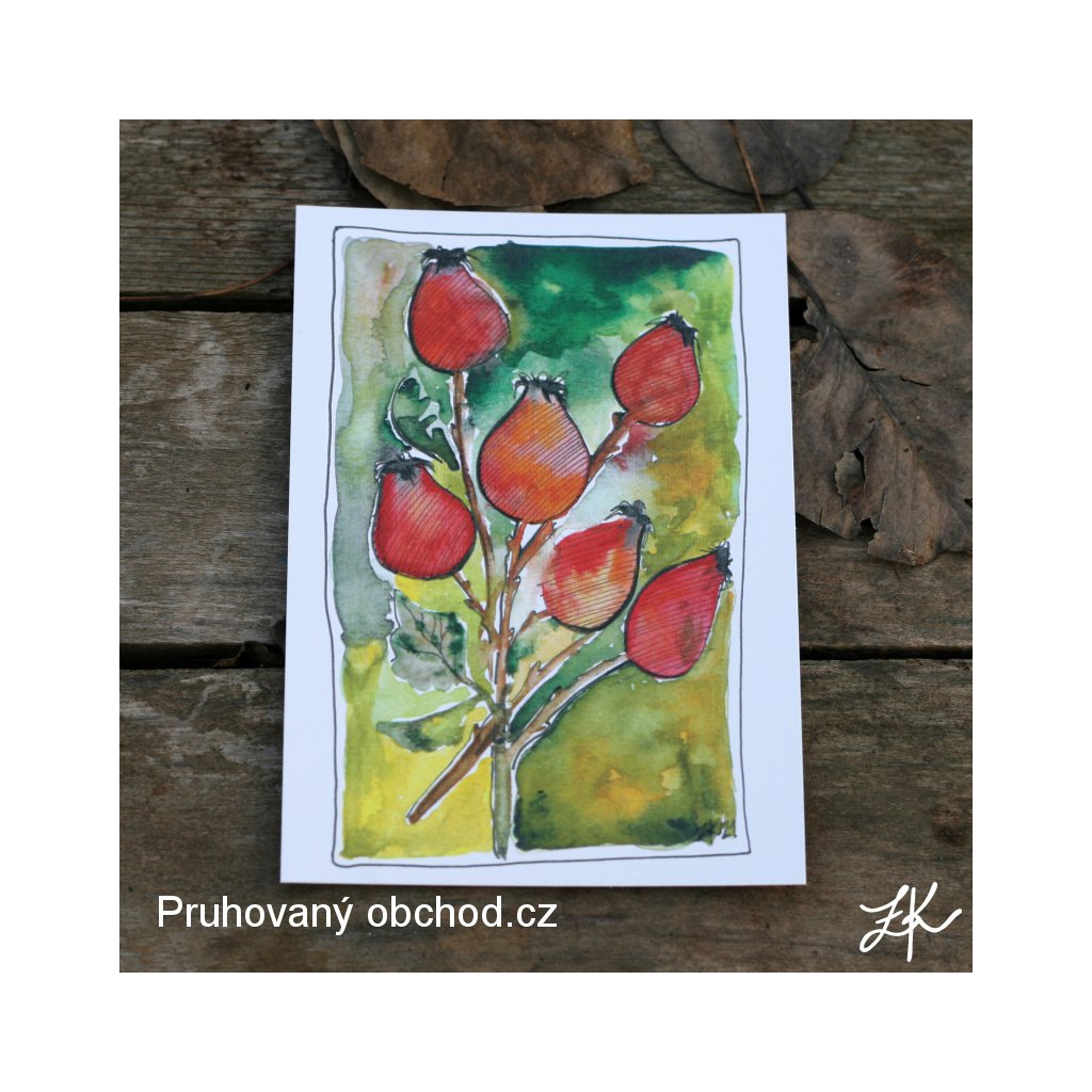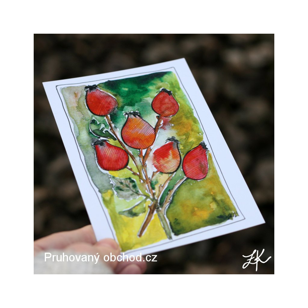 Za šípkovým keřem - pohlednice