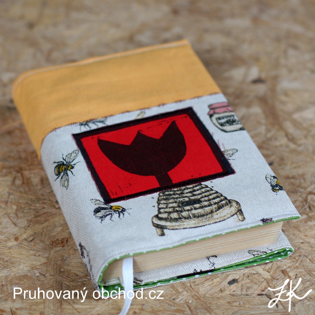 Obaly na knihy mají jednu záložku pevně ušitou, druhá se tvoří pomocí všité gumy, je tedy možné ho upravit na různě silnou knihu. Je všita textilní záložka. Výška obalu cca 23 až 24,5cm. Tloušťka hřbetu až 6cm.